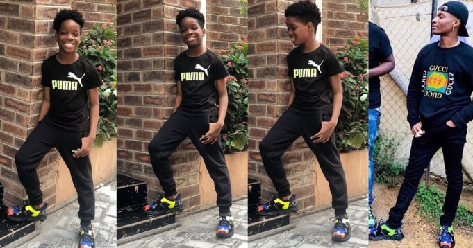Wizkid’s first son, Boluwatife Balogun is growing so fast that he now shares the same show size with his father.
