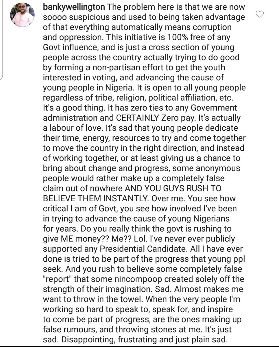 Banky W has reacted the the controversial report about the 67 million Youth Initiative and he said it is free from government funding.