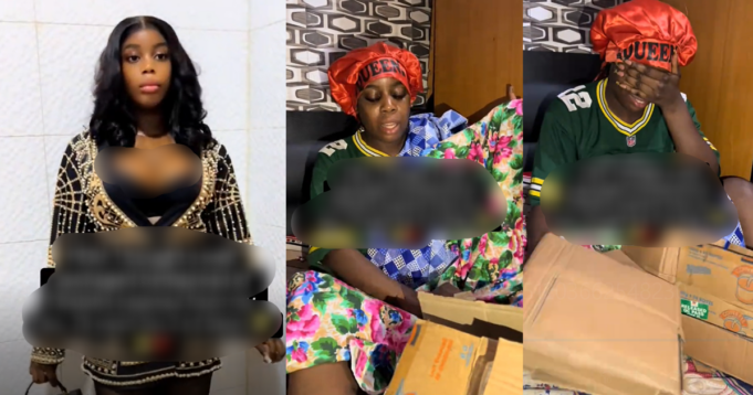 A lady expresses disappointment after a bedspread vendor allegedly swindled her into buying a ₦14,000 bedspread disguised with cartons.