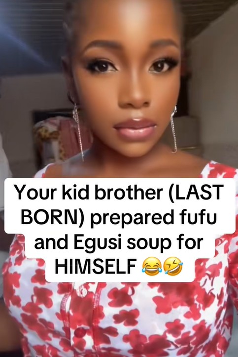 The lady made fun of her last-born brother’s cooking abilities since, given his poor cooking technique, the food he made for himself didn’t seem tasty.