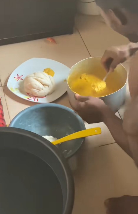 She posted a recorded video of her brother working hard to create a lunch on his own; the melon soup, called egusi in the area, wasn’t prepared properly and looked like a dish that may upset the stomach.