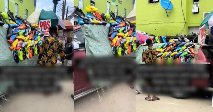Speaking in Yoruba, he pointed out that the trader had essentially turned his car into a shop by displaying the footwear prominently on the doors and rear windshield.