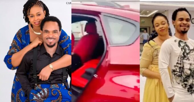 In the video he shared, his wife was seen gushing over her new car. Odumeje captioned the video;