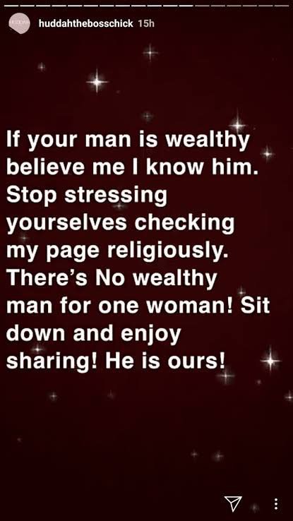 According to Huddah, if a lady’s boyfriend is rich, she probably knows him already and that such ladies should stop stressing themselves by religiously checking her page.