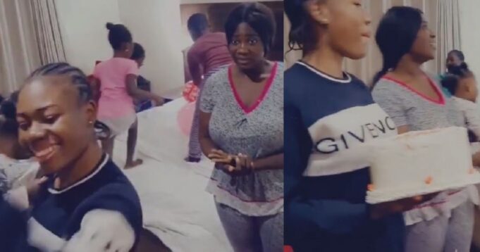 Mercy Johnson and her children surprised her sister at home with a cake and balloons to make her 21st birthday celebration a memorable one.