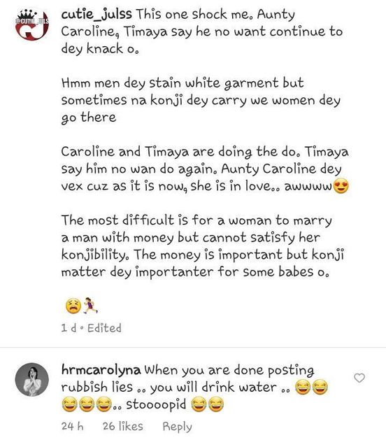 The drama started when controversial Instagram blogger, Cutie Juls, alleged that Caroline is in an amorous relationship with the singer, but he is allegedly tired of their affair.