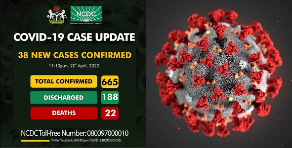 1 in EkitiAs at 11:10 pm 20th April there are 665 confirmed cases of #COVID19 reported in Nigeria.