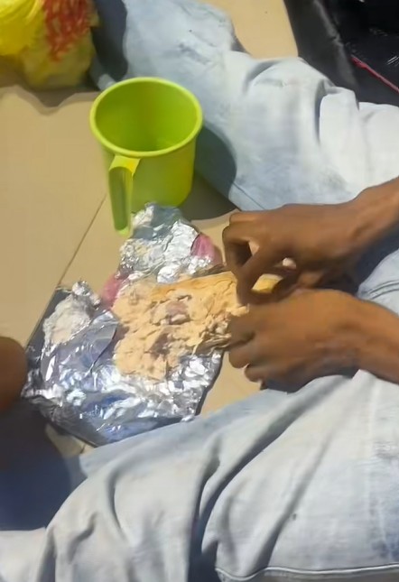 The unusual method of eating left him in disbelief, as it looked more like his friend was enjoying a local swallow meal than fast food.
