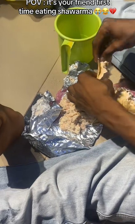 A man sparked a conversation online after sharing the unconventional method his friend devised to try shawarma for the first time.