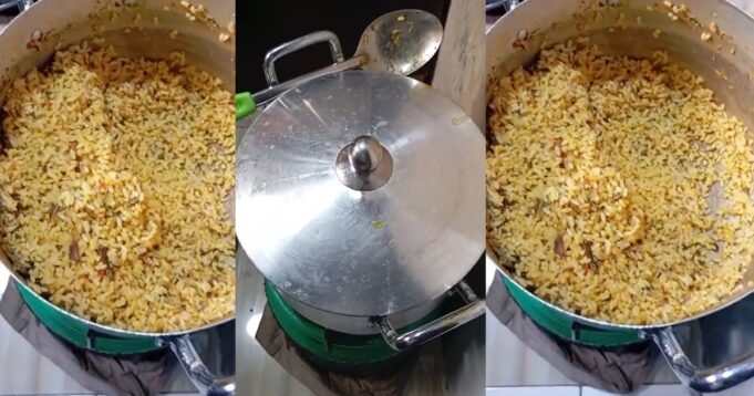 The man could be heard expressing his displeasure and lamenting over the unsavory meal his girlfriend prepared for N15,000. He exclaimed that he is yet to eat the meal but she had devoured half of the meal in the pot.