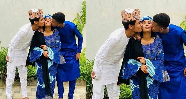 A Muslim lady with the twitter handle @MFaarees_, has berated a set of Arewa triplets for sharing a photo of them kissing each other on the cheek.