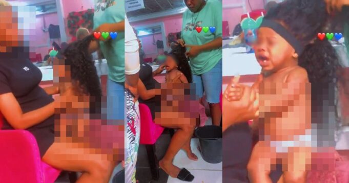 In what as be described as a very irresponsible behavior from the mother, the hairdressers fixed the wig as they would on a full-grown person and the child began to cry. That did not stop the mother from calling-off the process as she held her baby much to the chagrin of netizens.