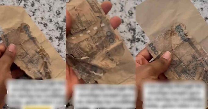 A newly wedded bride’s excitement turned to dismay upon discovering a torn and tattered ₦200 note enveloped as a wedding gift.