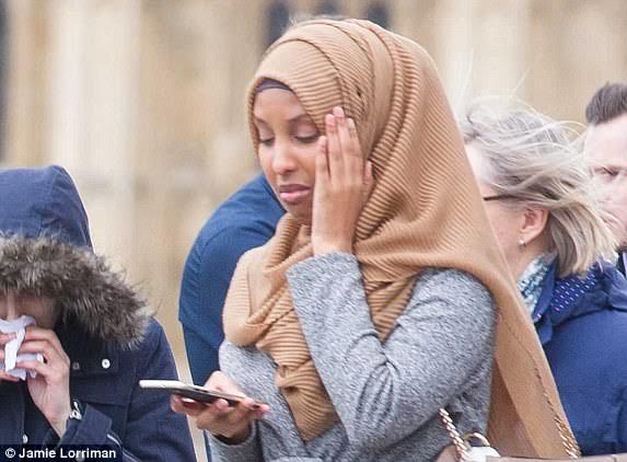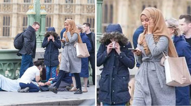 An online stir has broken out over a photo of a Muslim woman who was trolled after walking through the terror attack on Westminster Bridge while looking at her mobile phone.