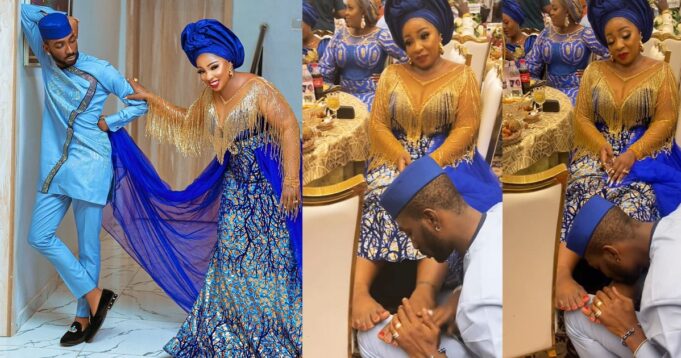The thespian and her husband were present at Iyabo Ojo’s mum’s star-studded final burial party that held over the weekend. However, at the party it seem the actress’ feet hurt from wearing heels for a long time, and her husband not minding the crowd bent to tend his wife’s feet.