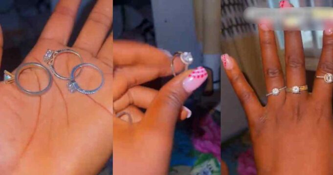 The woman @quenmother20 revealed the experience behind the three rings and her emotional struggle. She exclaimed that her age mates are receiving houses, cars, and various luxury items whereas she is accepting engagement rings.