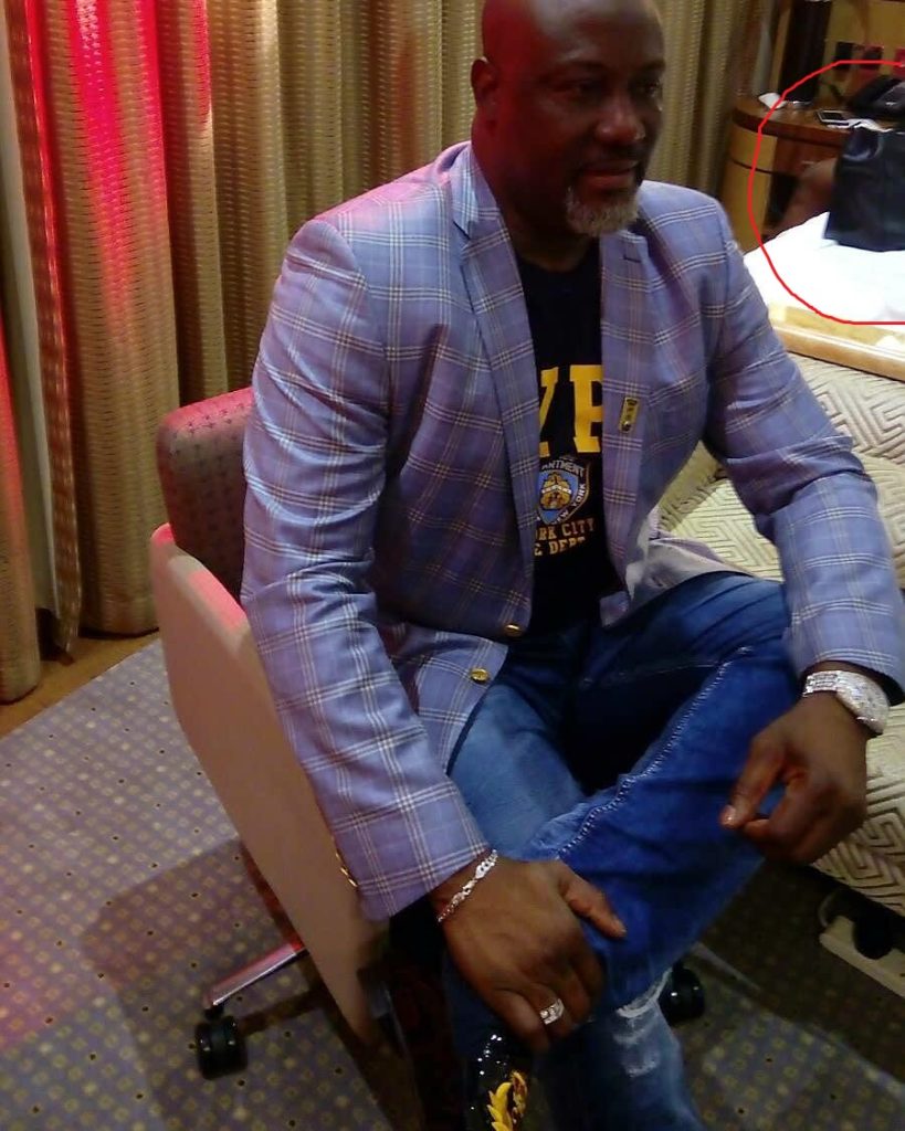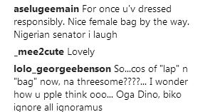 The senator, who in the photo, donned a blazer on jeans looking like a gentleman, had something else in his photo asides his debonair self – looking closely at the top left corner of the photo, a lady’s handbag and leg can be seen photo bumping his photo.