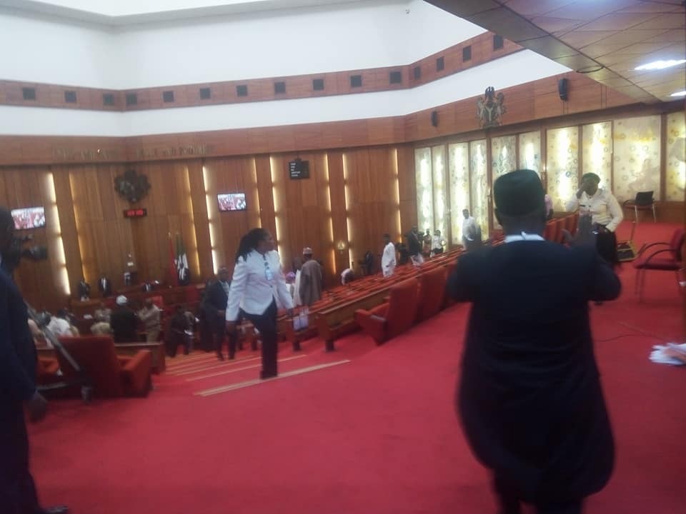 According to multiple reports, the incident happened immediately after a suspended senator, Ovie Omo-Agege entered the Chamber.