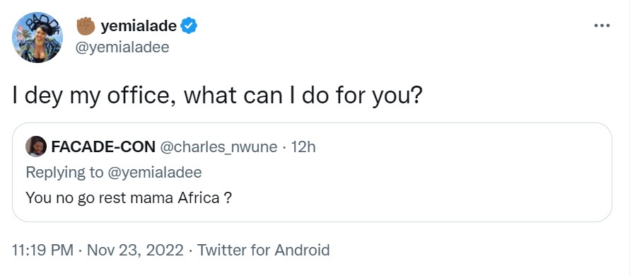 The troll didn’t back down and fired back at Yemi Alade saying,