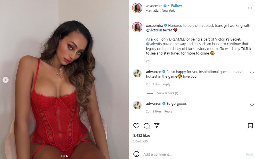 “Honored to be the first black trans girl working with @victoriassecret ❤️