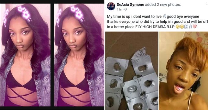 “My time is up i dont want to live ?good bye everyone thanks everyone who did try to help im good and will be off in a better place FLY HIGH DEASIA R.I.P”