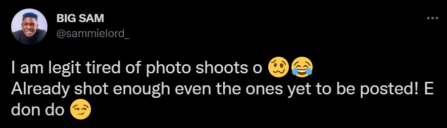 Nigerian Reality star, Sammie, has taken to his social media page to bitterly complain about the nonstop photo sessions he’s been having since he stepped out of the Big Brother Naija house.