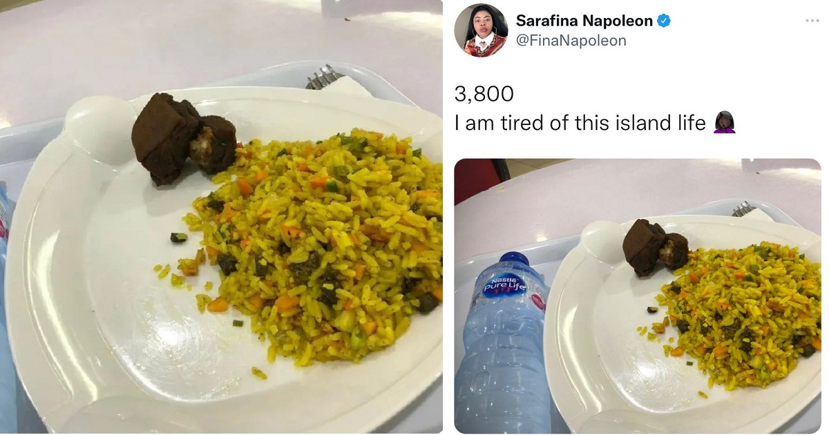 The Broadcast journalist, identified as Fina Napoleon, shared a photo of the plate of fried rice and beef with a bottle of water she bought in the Island area of Lagos state and stated that she’s fed up of that life.