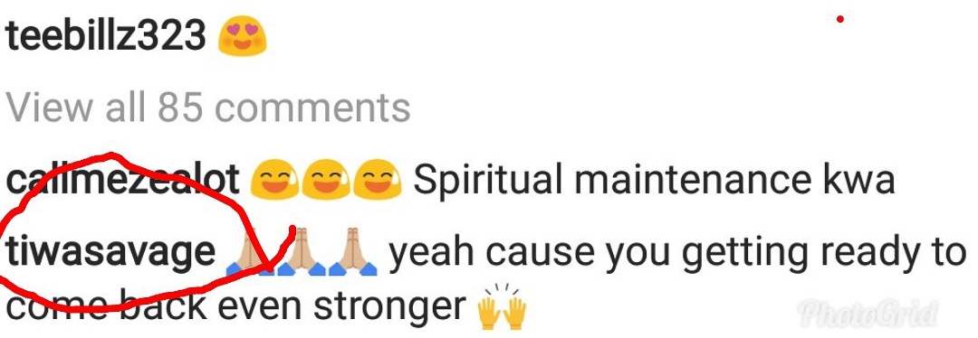 Tiwa Savage has continued to show the father of her son the support he needs as he plots his way back to reckoning in the Nigeria music industry and she was on his comment section, charging him to ‘come back stronger’.