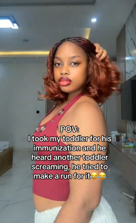 A toddler has left many people amused after trying to escape during a hospital visit for immunization.