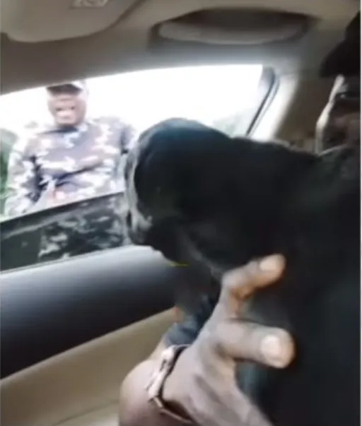 The motorist was in his car with his black Cane Corso dog when he approached the checkpoint at Ogoni, River state. As the officer tried to stop the car, apparently for a search, the dog launched at him.