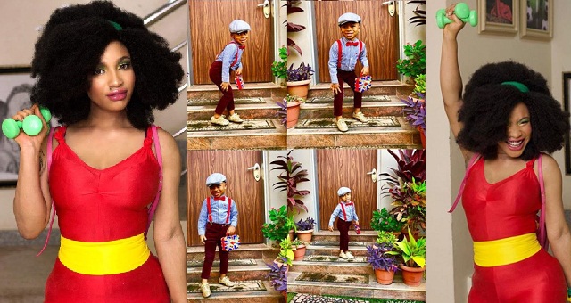 Nollywood Actress, Tonto Dikeh and her son King Andre stepped out looking colourful for an old school themed end of year party organised by King Andre’s school.