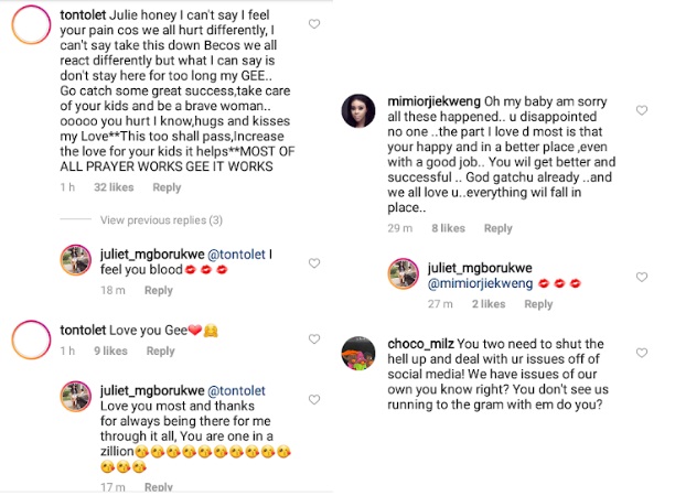 Tonto and Mimi, who both cited domestic violence when their marriages ended, apparently could relate to Juliet’s plight and they reached out to her via Instagram to offer support.