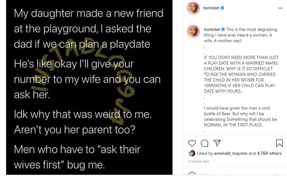 Nollywood actress, Tonto Dikeh has reacted to the viral tweet of a lady who complained about men who always ask for their wives’ permission.