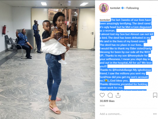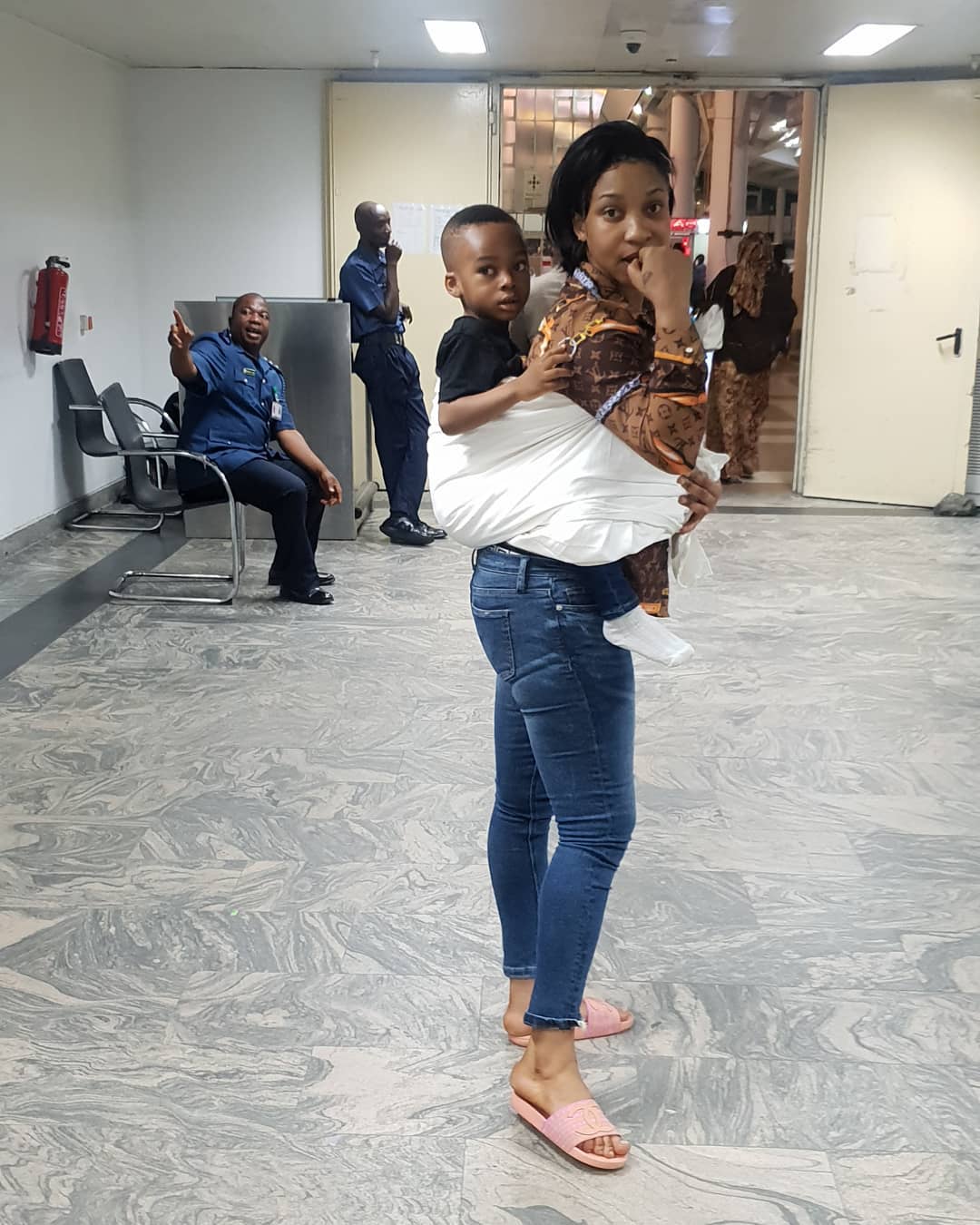Sharing a photo with her son at the hospital, Tonto Dikeh wrote;