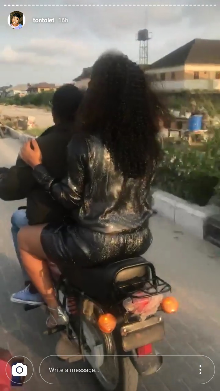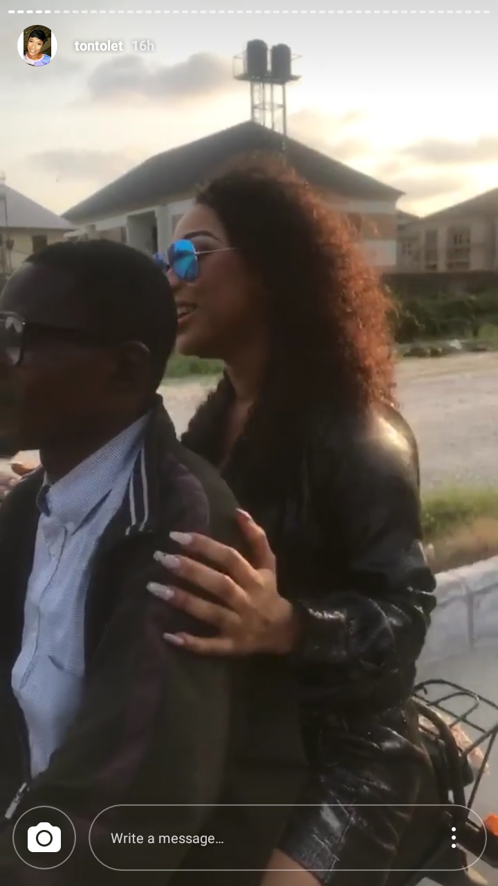 Nollywood actress and mother of one, Tonto Dikeh, looks like she had a whale of a time as she took an adventurous risk on her way to see a movie.