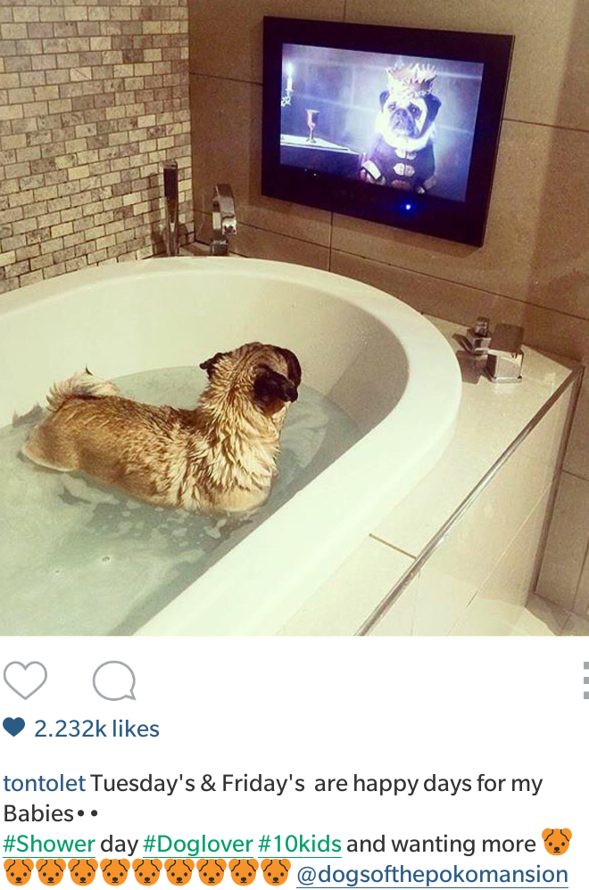 Tonto Dikeh is known to have ineffable love for her animals, (dogs), she shares this photo of one of her dogs chilling in a bathtub in her home as it watches TV… a luxury most average humans don’t get to enjoy everyday… Yeah well…