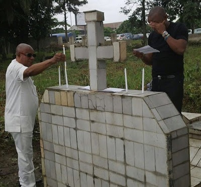 The family lit candle on her grave side led by Mr Dikeh and his son Charles.