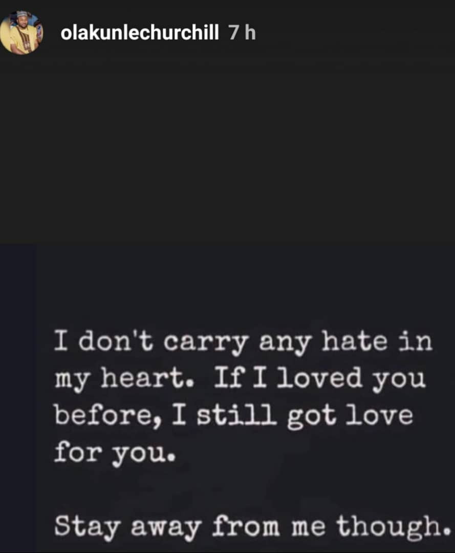 Well, Olakunle has replied her… See his subtle reply posted on his instastories below.
