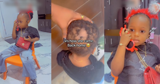 A Nigerian mother was taken aback when her daughter came home with a bald head after attending her school’s Christmas Carol.