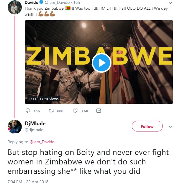 Afro-pop star, Davido is currently being linked with another controversy – the singer has been accused of fighting with South African actress, Boitumelo Thulo better known as ‘Boity’.