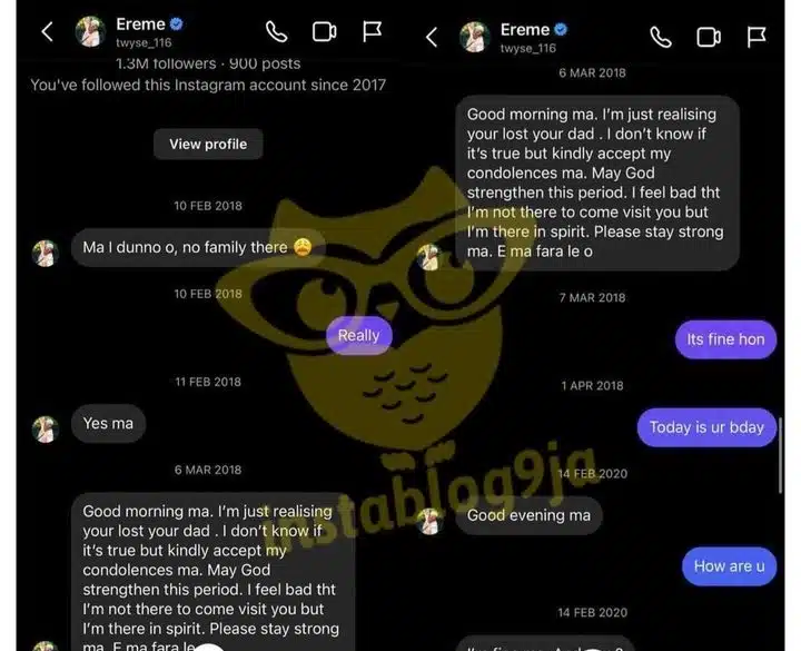 Reacting to his accusations, Toyin Abraham’s management released screenshots of chats, revealing that the actress actually reached out to the skit-maker and they were in communication until 2021.