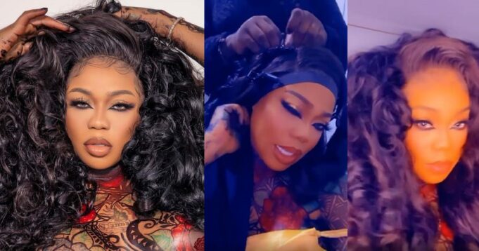 Toyin Lawani who shared a video that captured the making of the wig wrote,