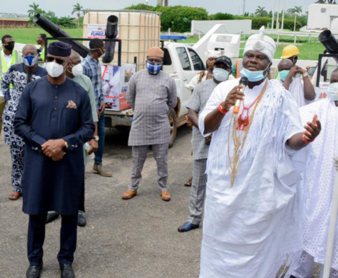 In his remarks, Ogun State Governor Dapo Abiodun commended the monarch for the gesture and assured him that the fumigators he donated will be put to good use.