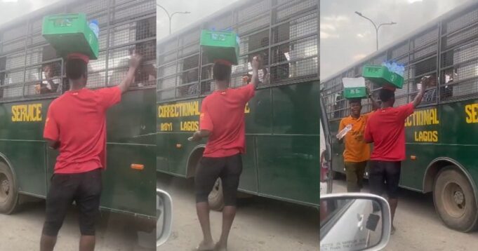 The video of a street hawker giving money to some prisoners who were inside a correctional service vehicle in the Ajah area of Lagos has warmed hearts online.