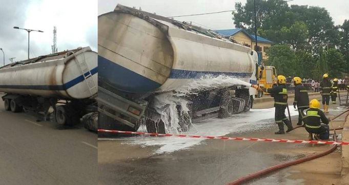 LASEMA officials immediately stormed the scene and started diluting the diesel – the road has been closed from vehicular movement so as to prevent another fire disaster.