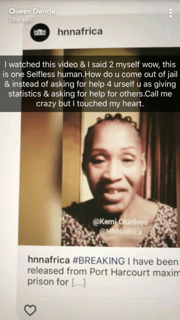Although, Dencia who was touched by Aunty Kemi’s post on her Instagram page, had reached out to her after which the journalist explained all she has been going through to her.
