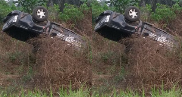 According to reports, the officers, who were driving an official police car, chased after a Sienna carrying passengers along the Ogoni/Akwa Ibom road. In the course of the chase, the police car crashed into a bush and somersaulted.