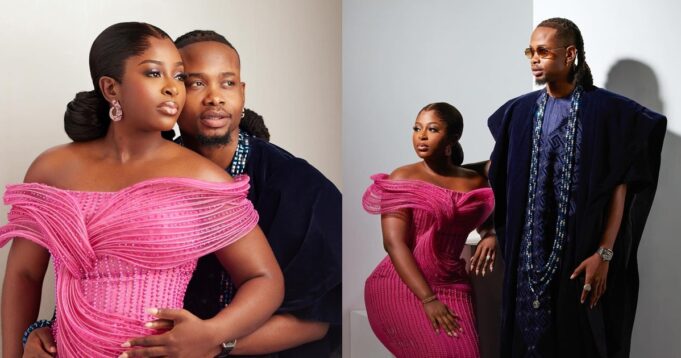The couple’s pictures showcased a heartwarming display of affection with Thayour in a pink corset dress styled by a notable Nigerian designer while Yhemo Lee rocked a navy blue agbada and a long beaded necklace depicting an elegant Yoruba man.