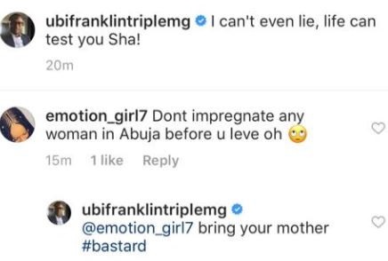 However a fan decided it was the right moment to advice the 33-year-old to snap out of ideas which might lead him to get an Abuja lady pregnant.