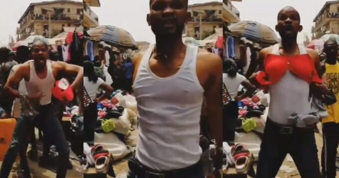 In a video making the rounds online, the thespian stormed the market with his signature red bra and called for an Igbo president in 2023.